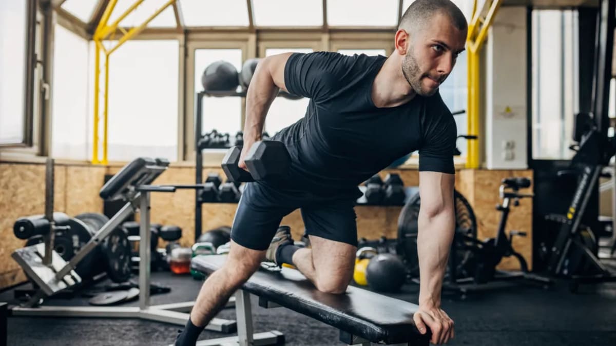 Parfait pour sculpter le dos et renforcer les biceps, le rowing unilatéral se réalise avec un genou et une main sur un banc pour stabiliser votre corps. Avec l’autre main, tirez l’haltère vers votre torse tout en gardant le dos droit.