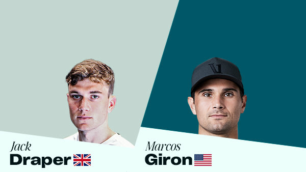 Cela dit, Draper sera le favori. Il est classé 39 places plus haut que Giron et à 23 ans, a huit ans de moins. Il mène également la tête à tête 2-0 et a plus de puissance de feu tout autour, en particulier avec son service.